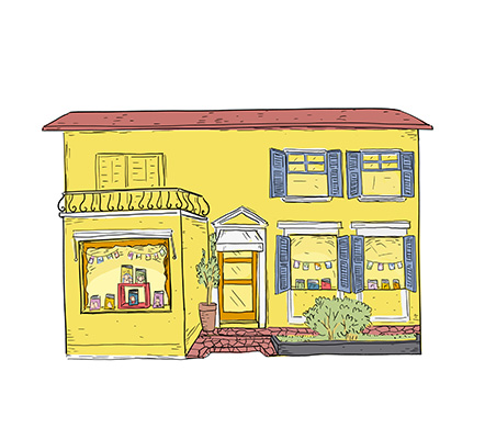 Uma casa amarela que, há 30 anos, abriga uma livraria especializada em literatura infantojuvenil.